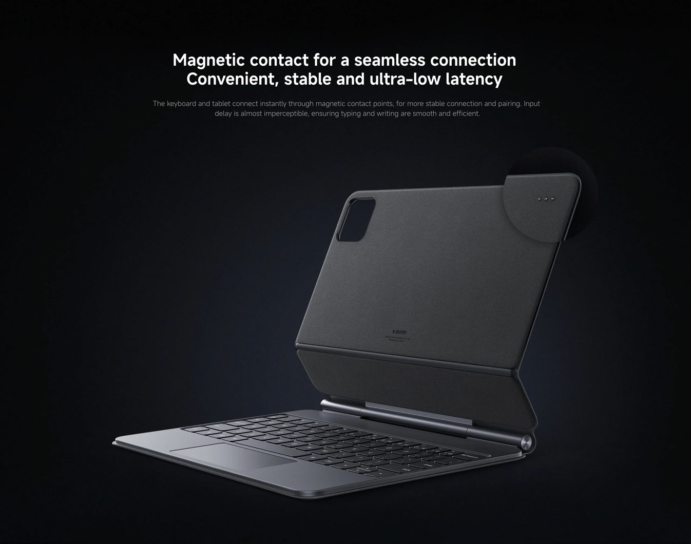 Xiaomi Pad 7 / 7 Pro Focus Keyboard – Tastierë e kompaktë dhe mbrojtëse në një për tabletin Xiaomi Pad 7 / 7 Pro. Kur hapet, bëhet tastierë për shkrim komod si në PC, dhe kur mbyllet – shërben si mbrojtëse. Lidhja bëhet me kontakte magnetike për konectim të menjëhershëm dhe latencë minimale; tastat e mëdha dhe komode japin përvojë të rehatshme në shkrim.