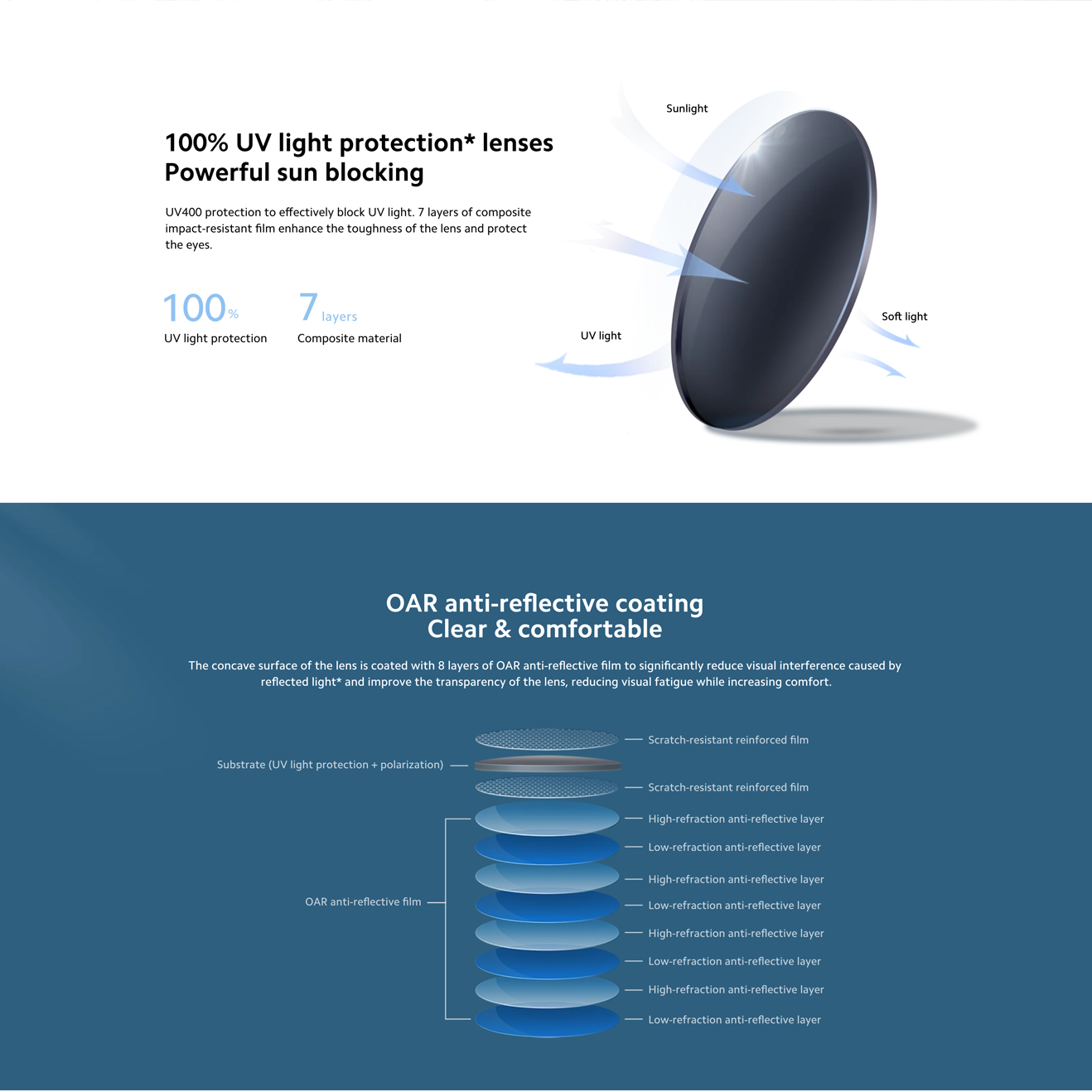 • Anti-Reflective Coating: 8-layer OAR (Optical Anti-Reflective) coating to reduce glare and enhance clarity