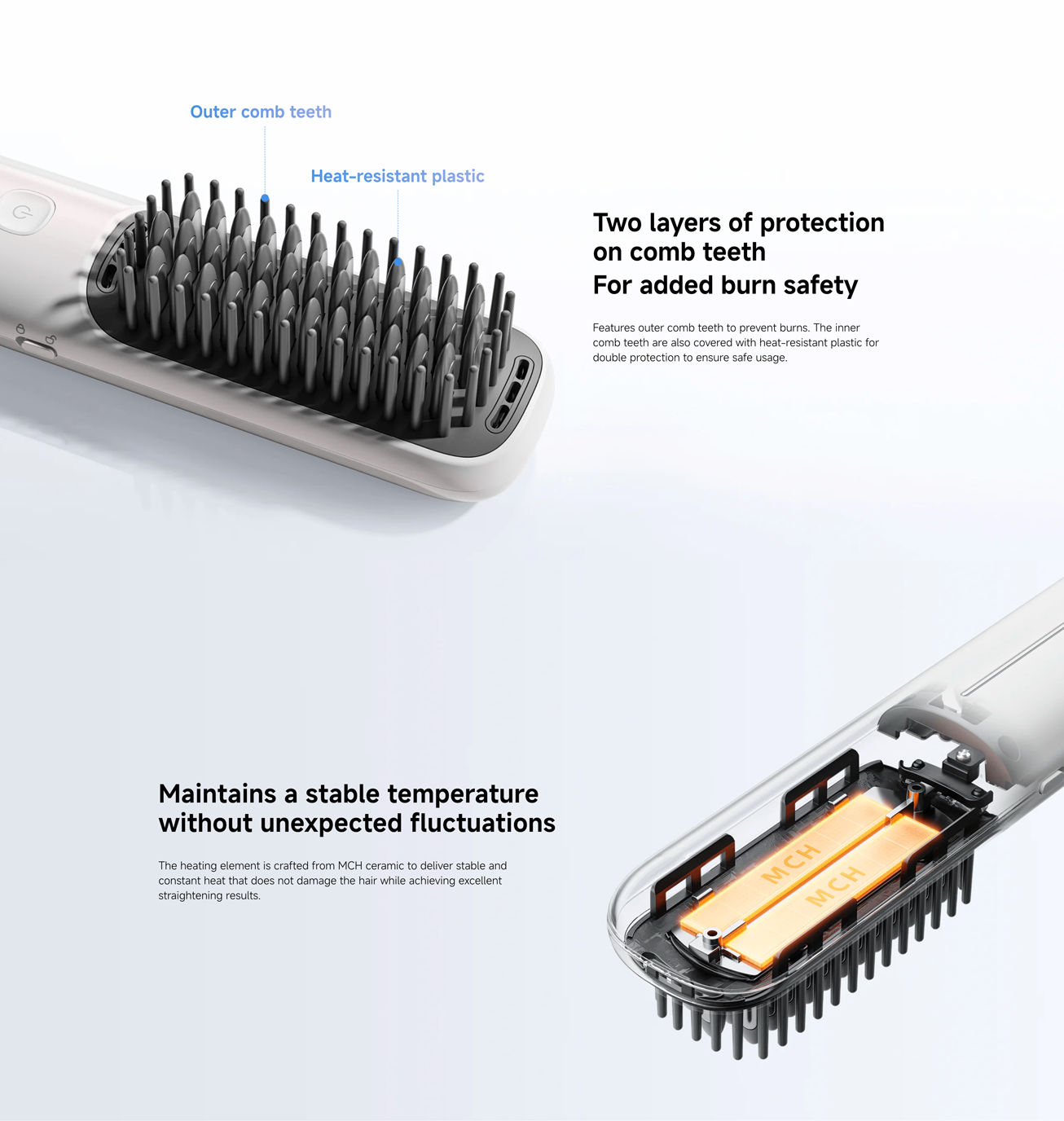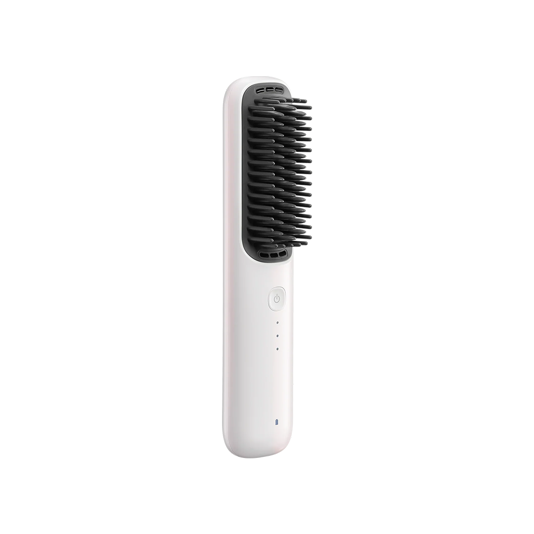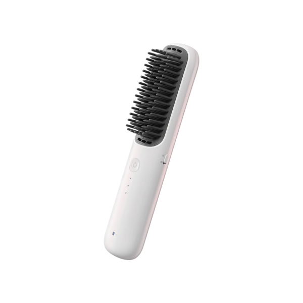 A portable, cordless styling brush with rapid heating and multiple temperature settings for smooth, frizz-free hair.