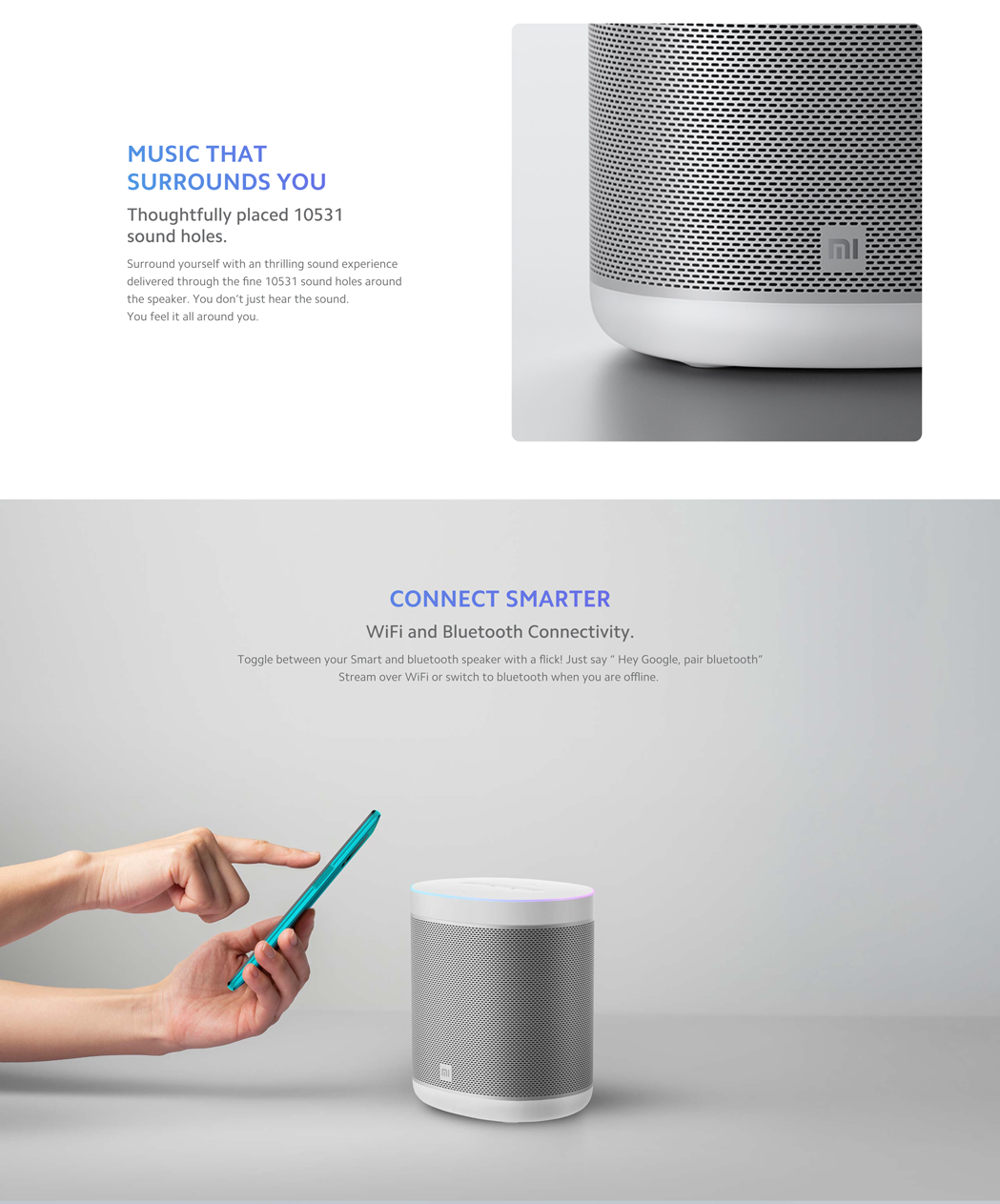 Mi Smart Speaker – Një altoparlant inteligjent me ndërtim modern dhe tingull të pasur, krijuar për të sjellë muzikë, podcast-e dhe asistentë zanor në çdo hap të ditës. Me lidhje të lehtë dhe dizajn kompakt, përshtatet bukur në çdo dhomë dhe e bën përvojën zanore më të thjeshtë.