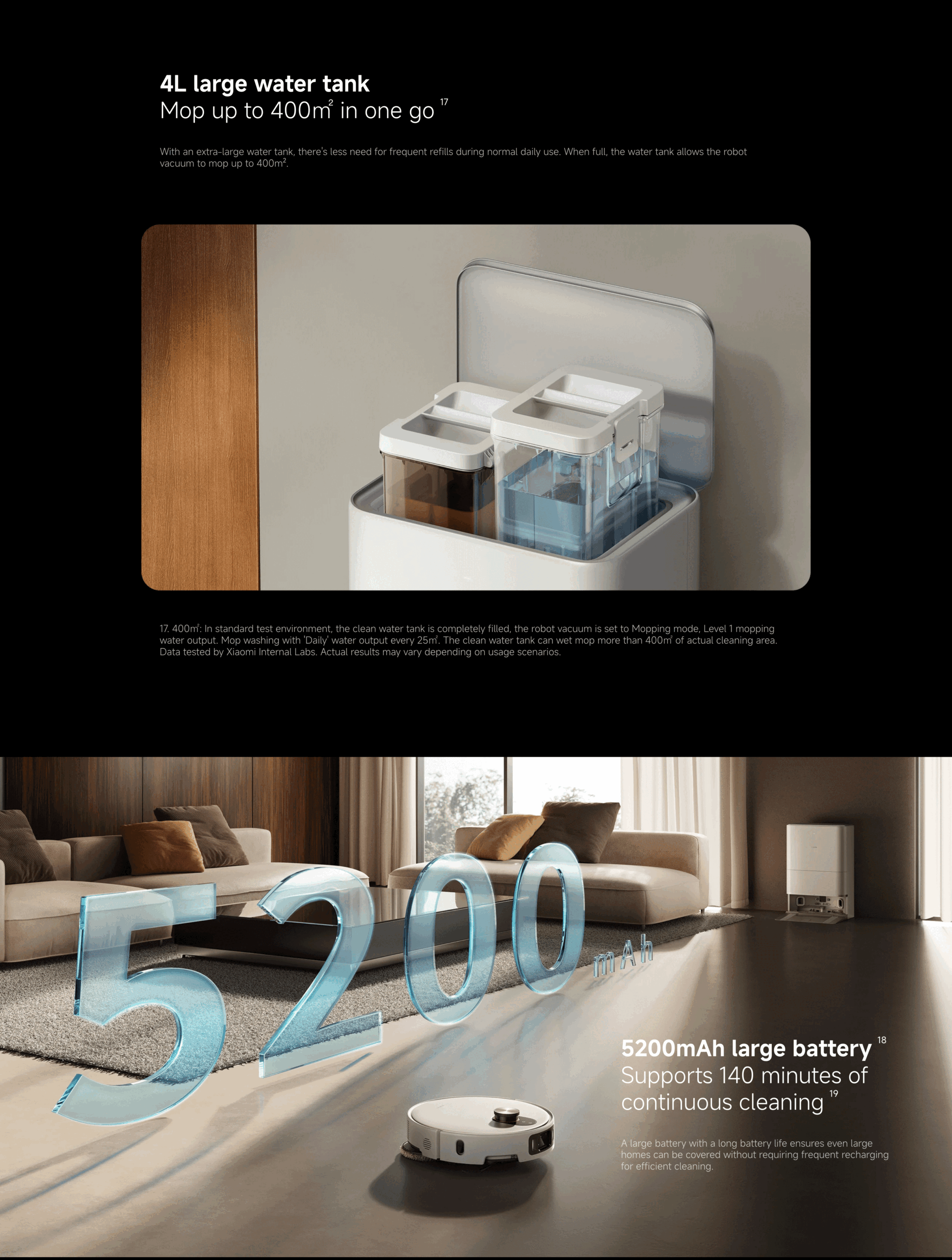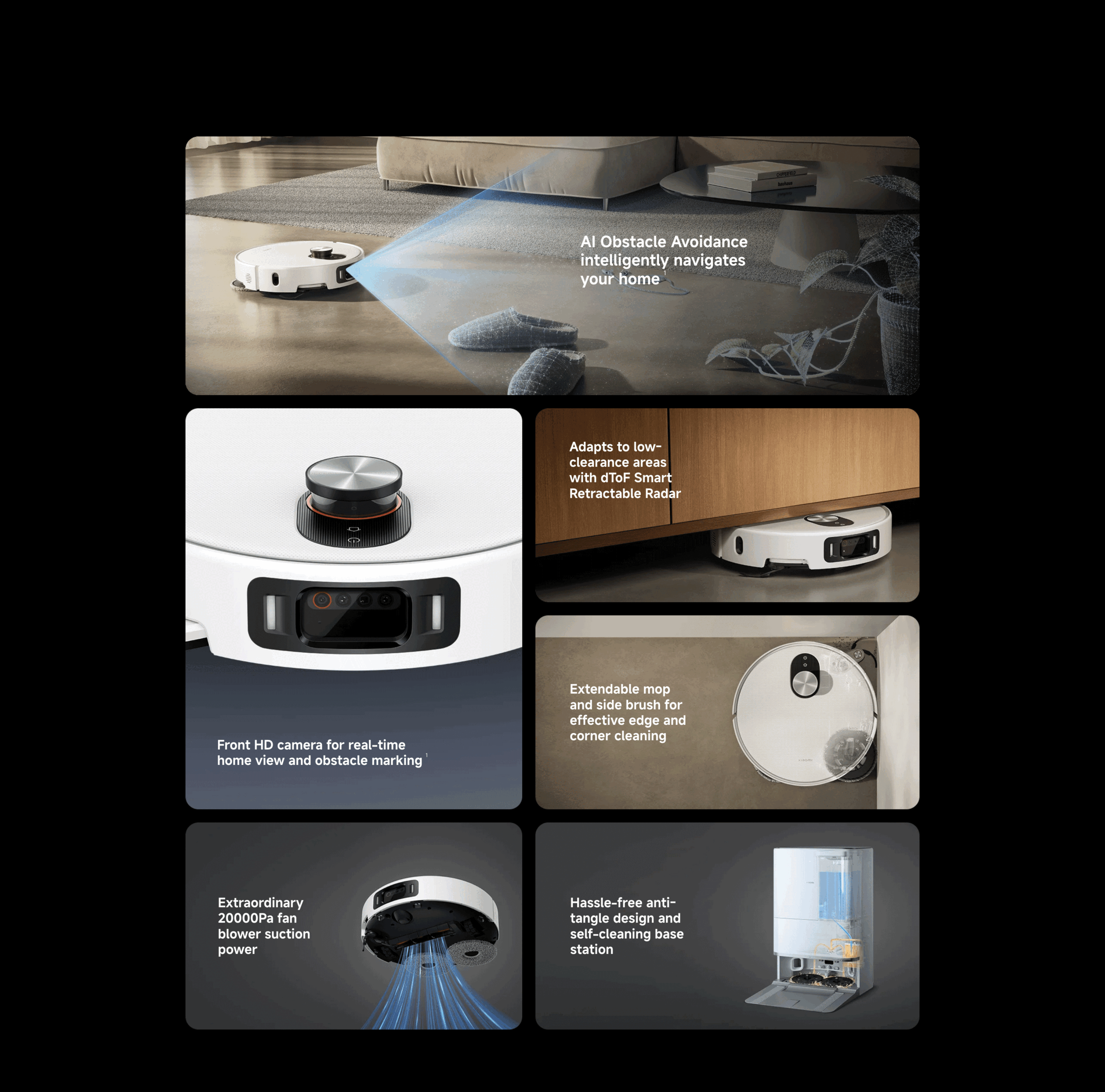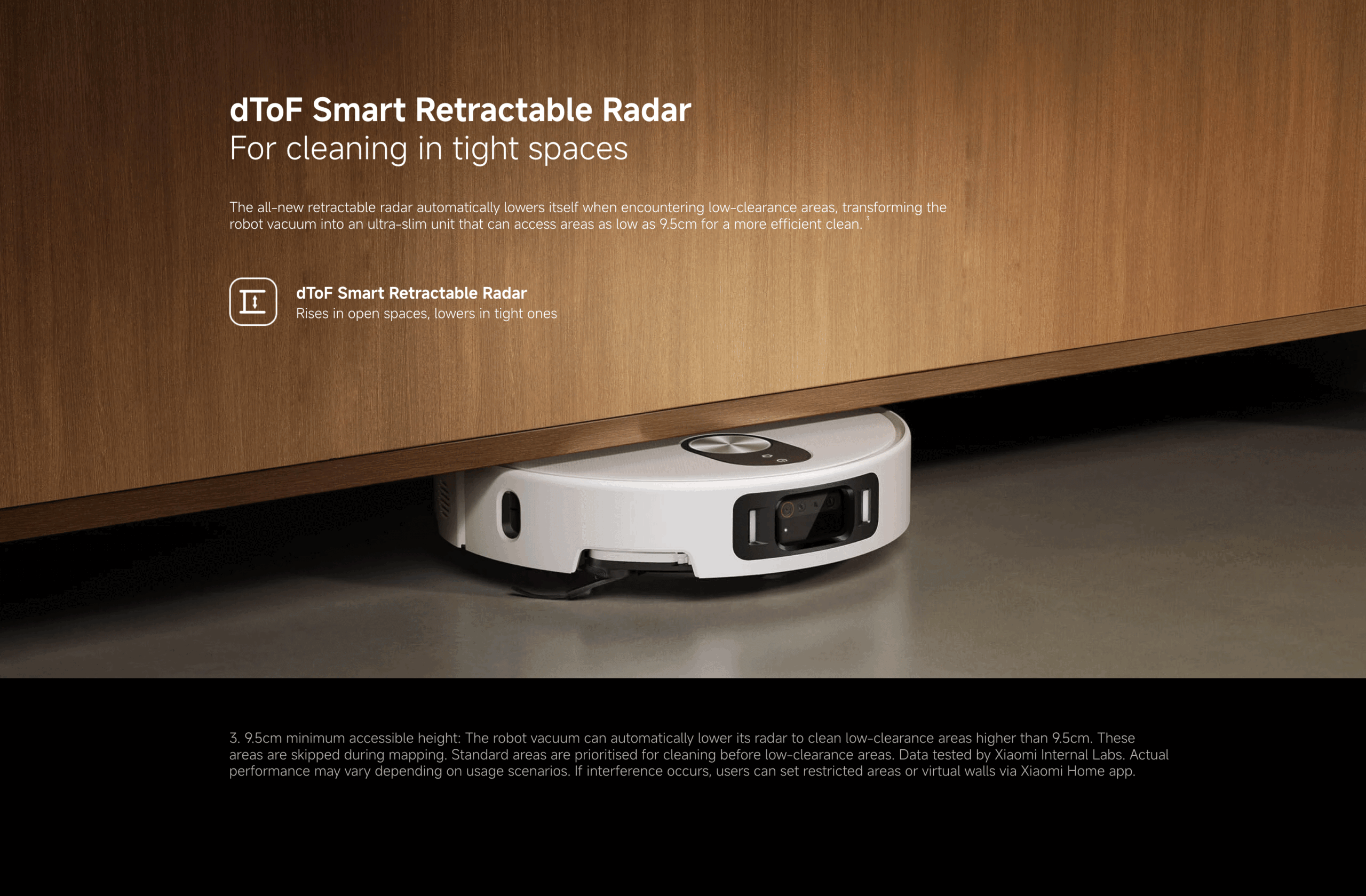 Xiaomi Robot Vacuum 5 Pro – Robot pastrimi inteligjent me thithje të fuqishme deri në 20 000 Pa, navigim preciz me radar dToF dhe sistem të avancuar që identifikon automatikisht lloje të ndryshme mbeturinash dhe pengesash për pastrim optimal. Me bazë automatike që pastrohet vetë, mopa që mund të lahet me ujë të nxehtë dhe karikim që mbulon hapësira të mëdha, ofron një pastrim të plotë pa shumë mundim dhe kontroll të lehtë përmes aplikacionit Xiaomi Home.